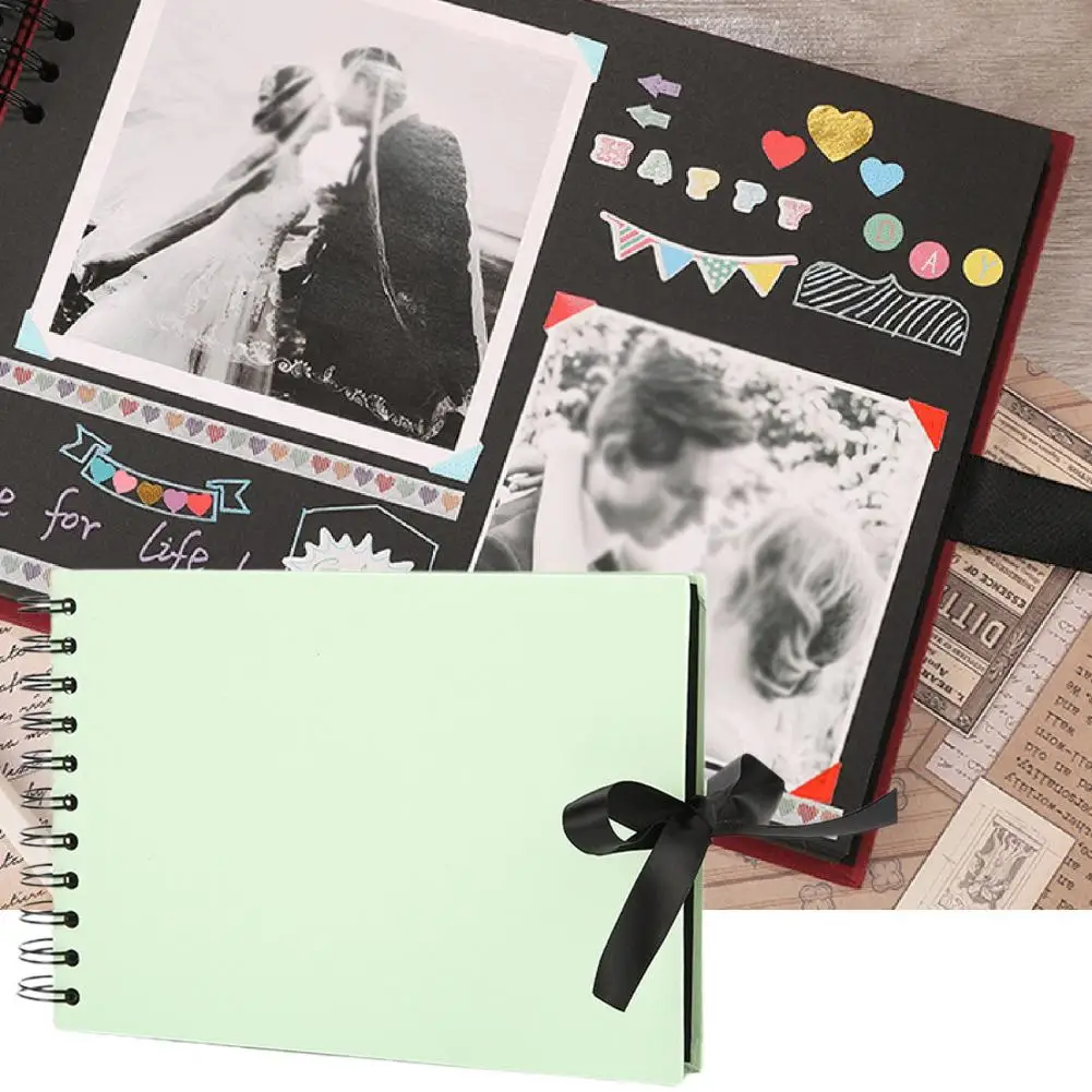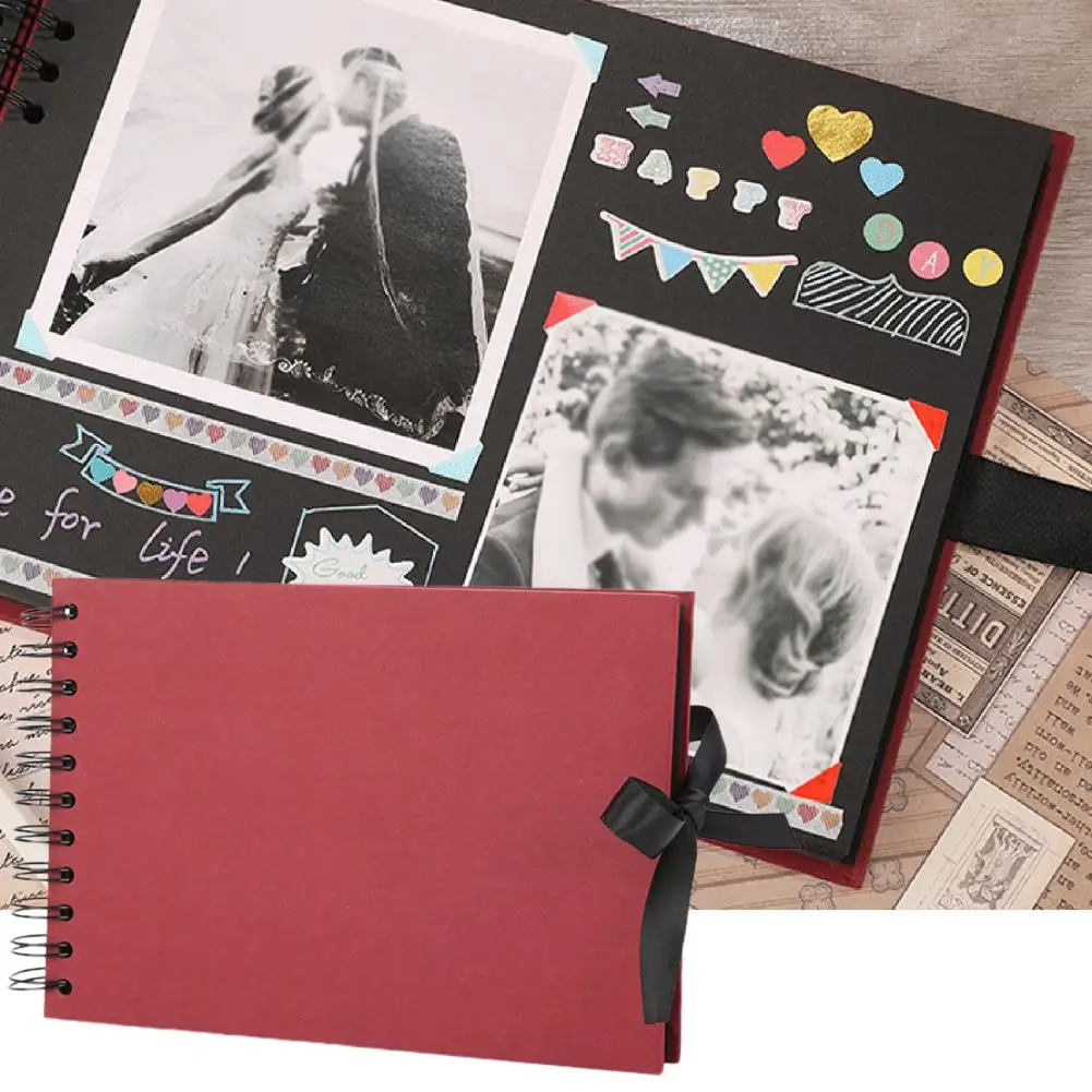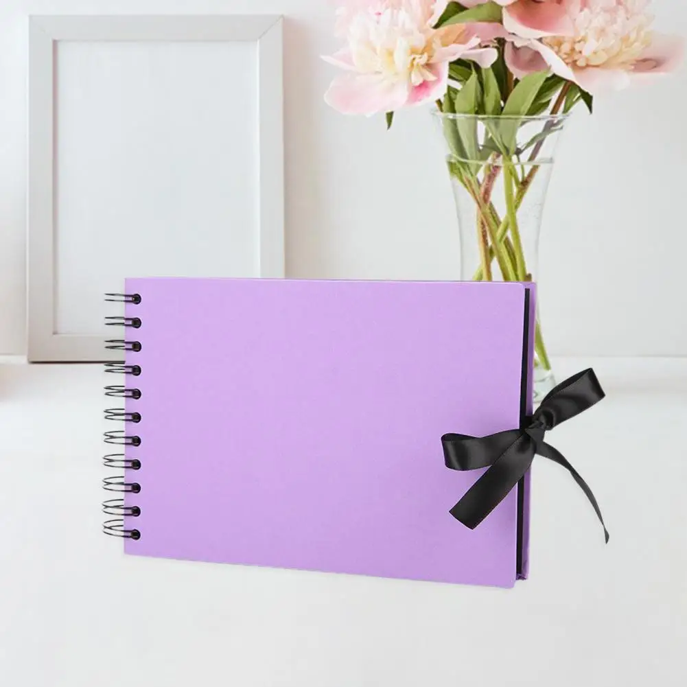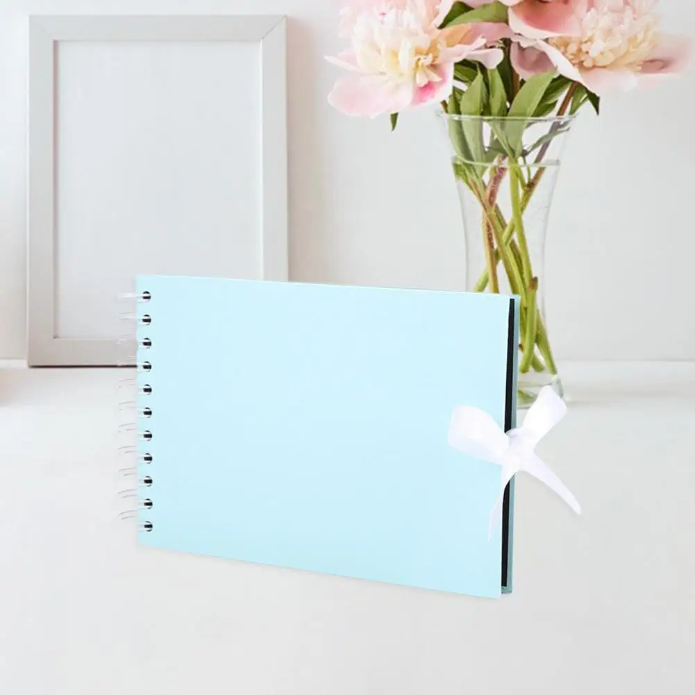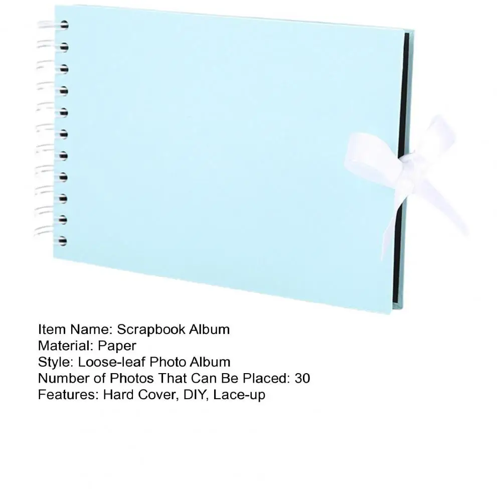 A5 Scrapbook Photo Album with Bowknot Ribbon DIY Hard Cover Loose Leaf Lace-up Wedding Travel Baby Family Children Anniversary Picture Collection Book