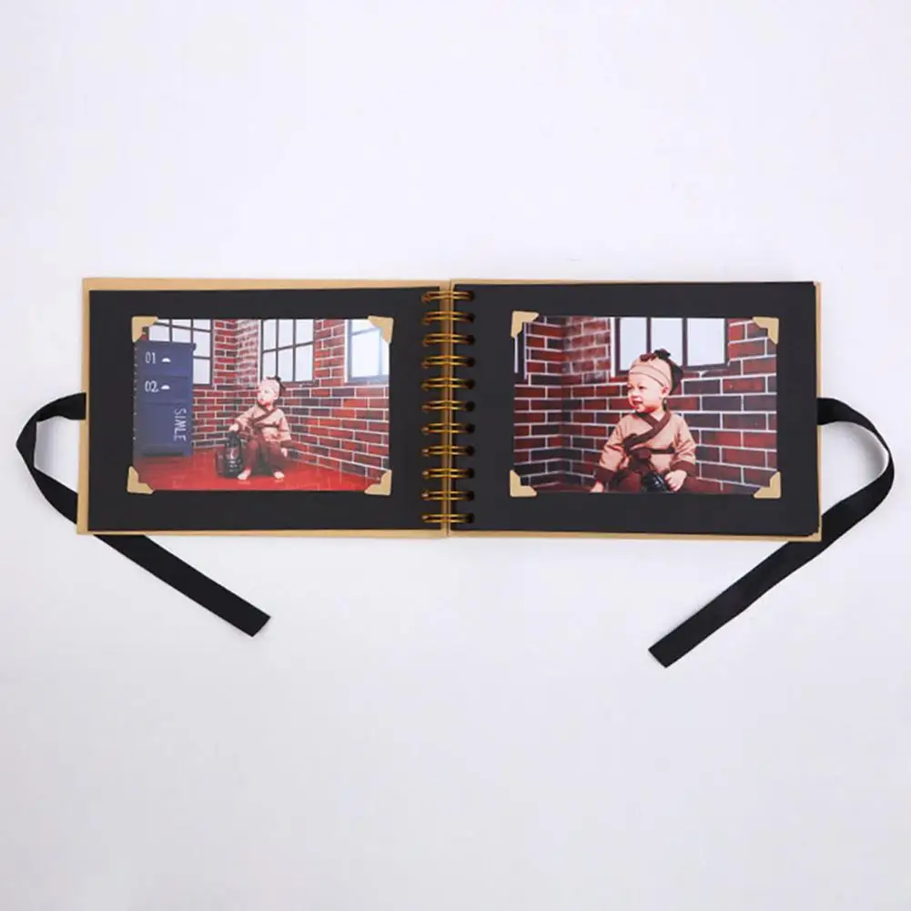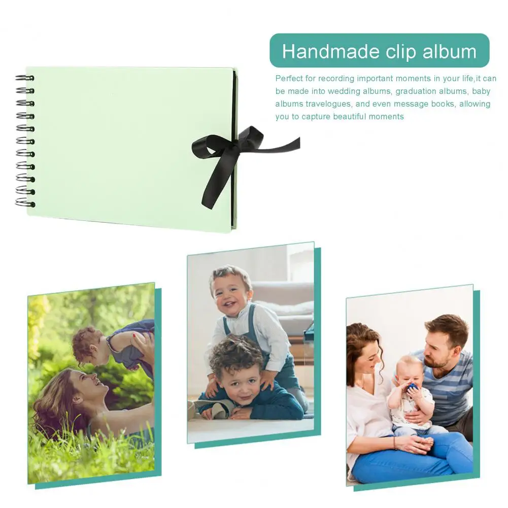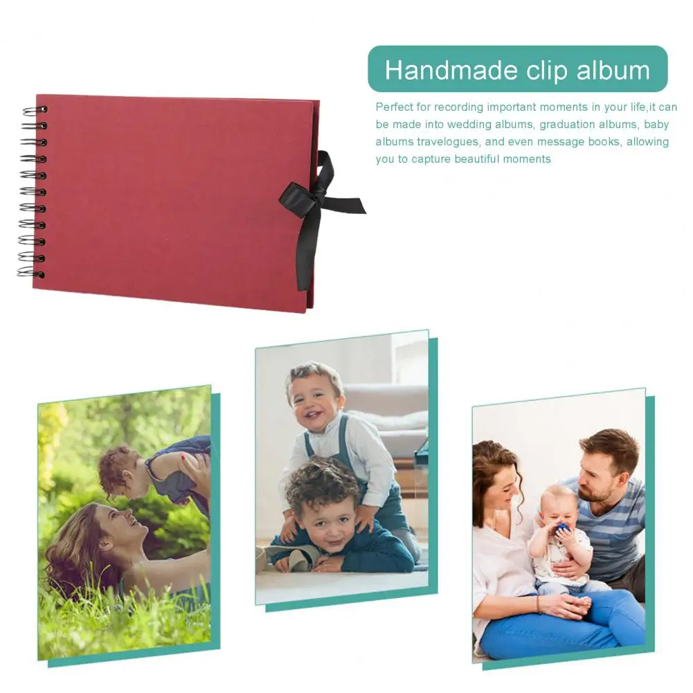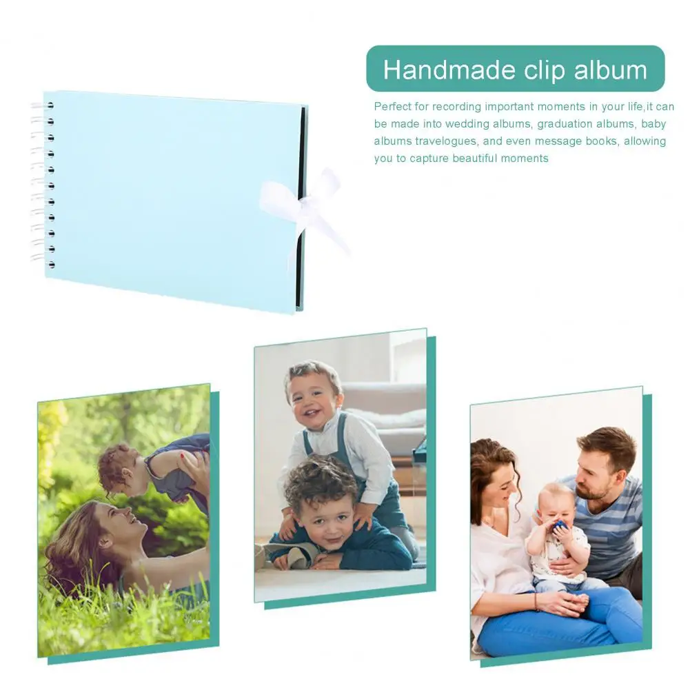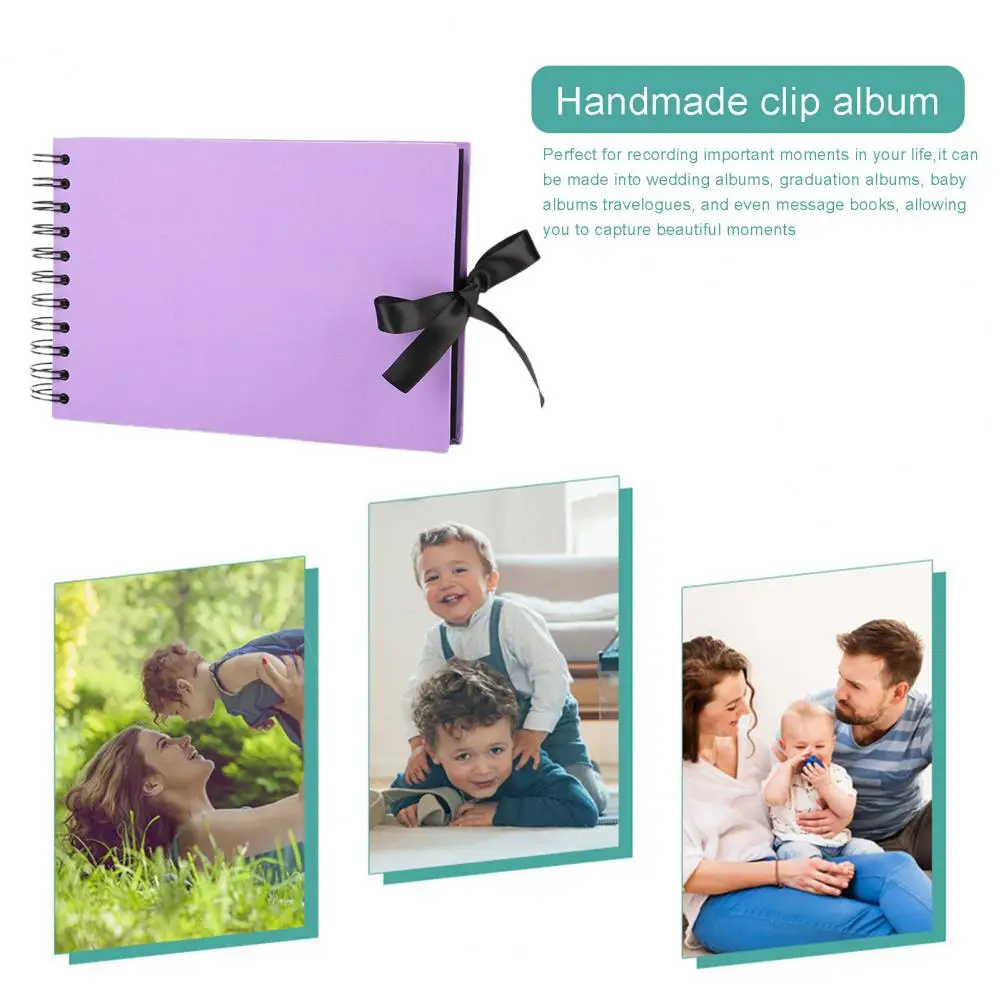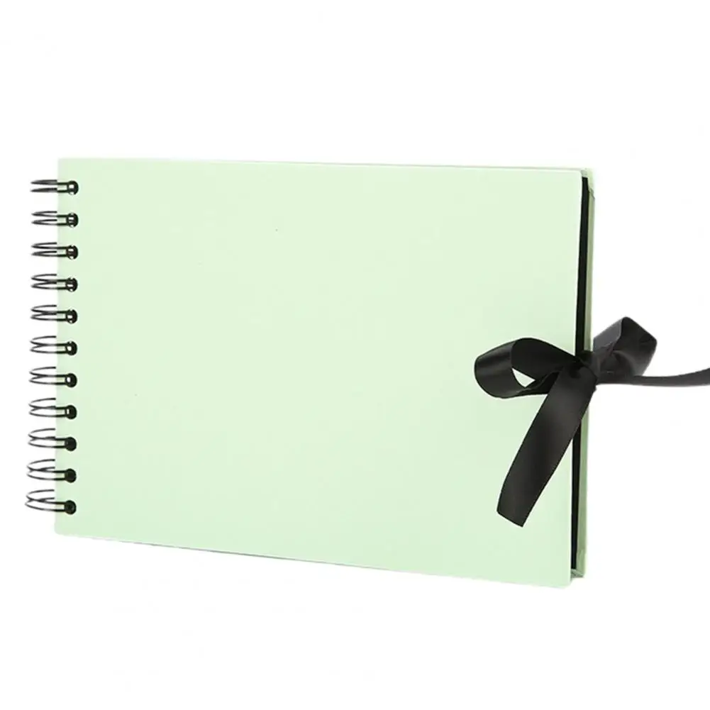 A5 Scrapbook Photo Album with Bowknot Ribbon DIY Hard Cover Loose Leaf Lace-up Wedding Travel Baby Family Children Anniversary Picture Collection Book