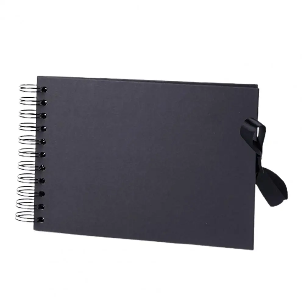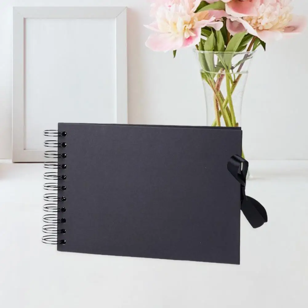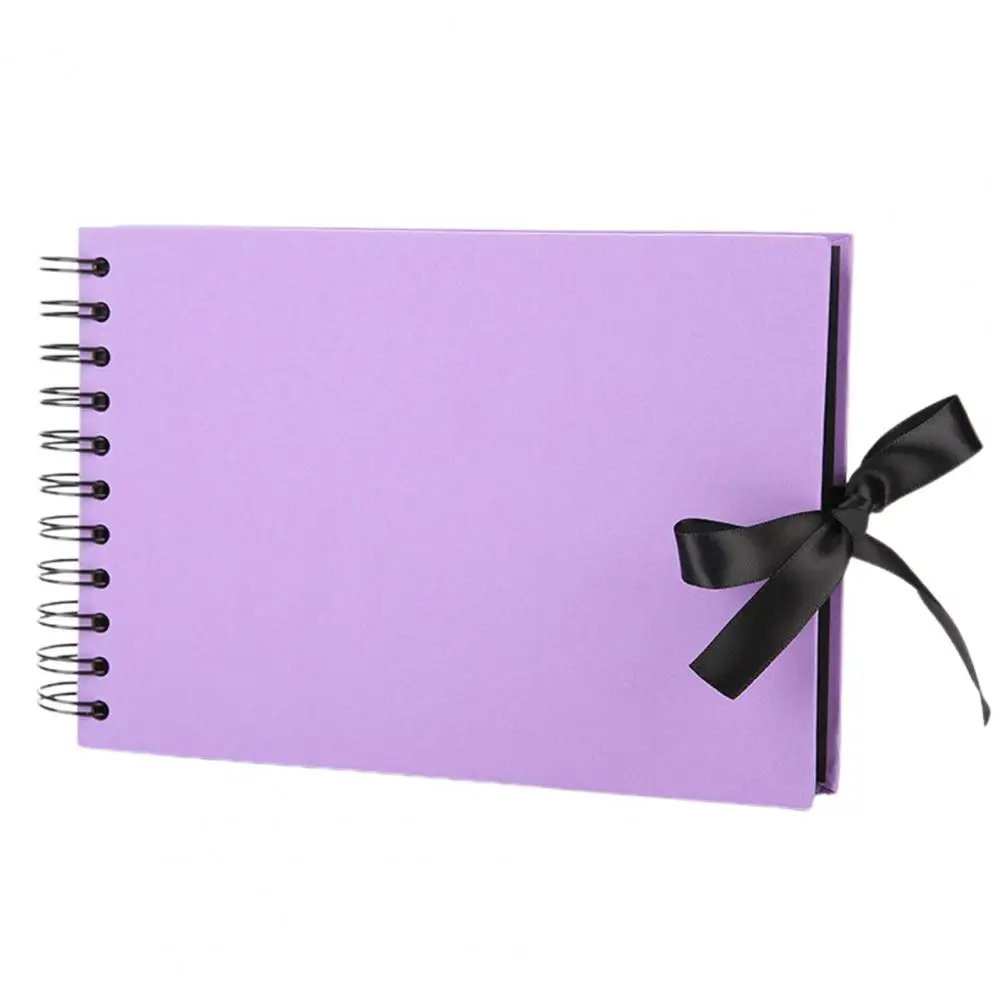 A5 Scrapbook Photo Album with Bowknot Ribbon DIY Hard Cover Loose Leaf Lace-up Wedding Travel Picture Collection Book