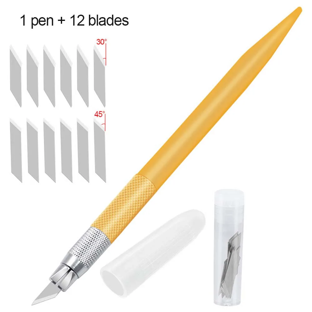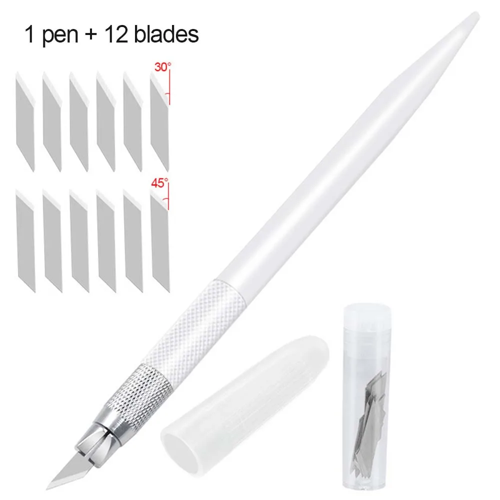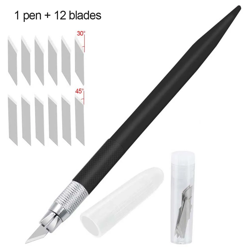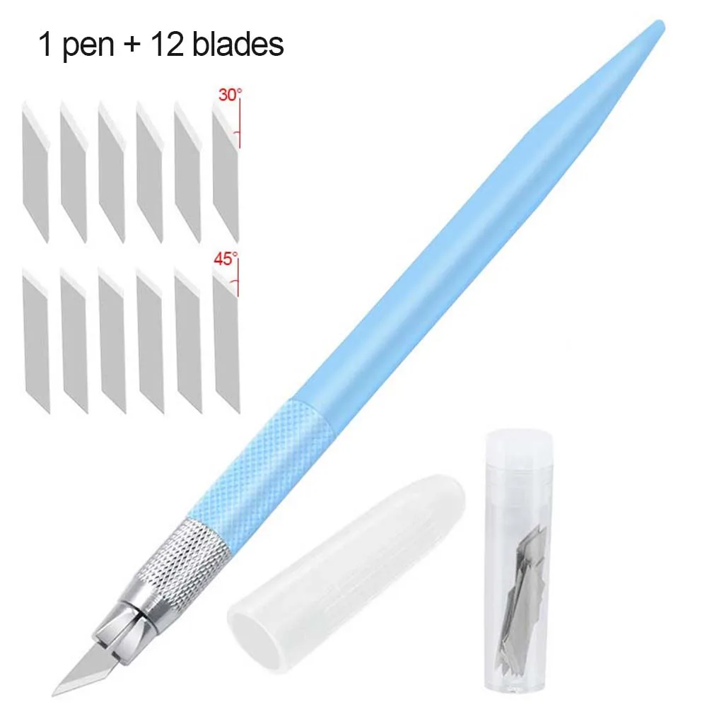 Specification: 1 pcs carving pen knife +12 pcs blades (including storage bottle)+1 pen cap