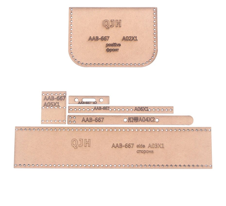 ----Acrylic: Acrylic is heavier than kraft paper, and it is not easy to slip when drawing lines. The transparent material can see the leather material to avoid cutting errors. It can be reused. The stitching holes of the acrylic pattern are circular stitching holes with a pitch of 4.00mm.