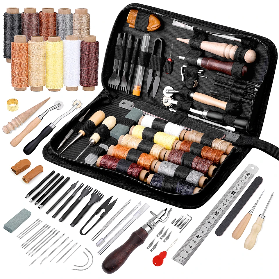 KRABALL Leather Craft Working Tools Stitching Sewing Kit Repair Set with Waxed Thread Groover Awl for Beginners Professionals